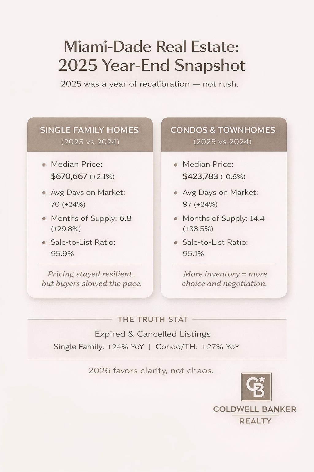 Miami in 2025 didn’t feel like “boom” or “bust.” It felt like something more mature: a market recalibrating. Buyers were pickier, sellers had to be sharper, and the homes that nailed price + condition + location still moved.
